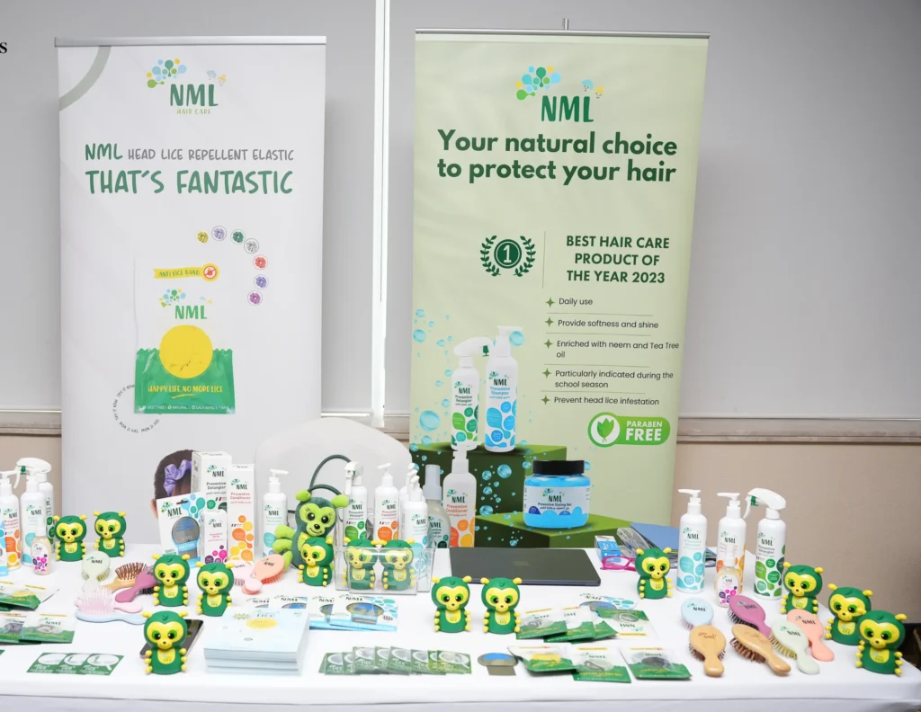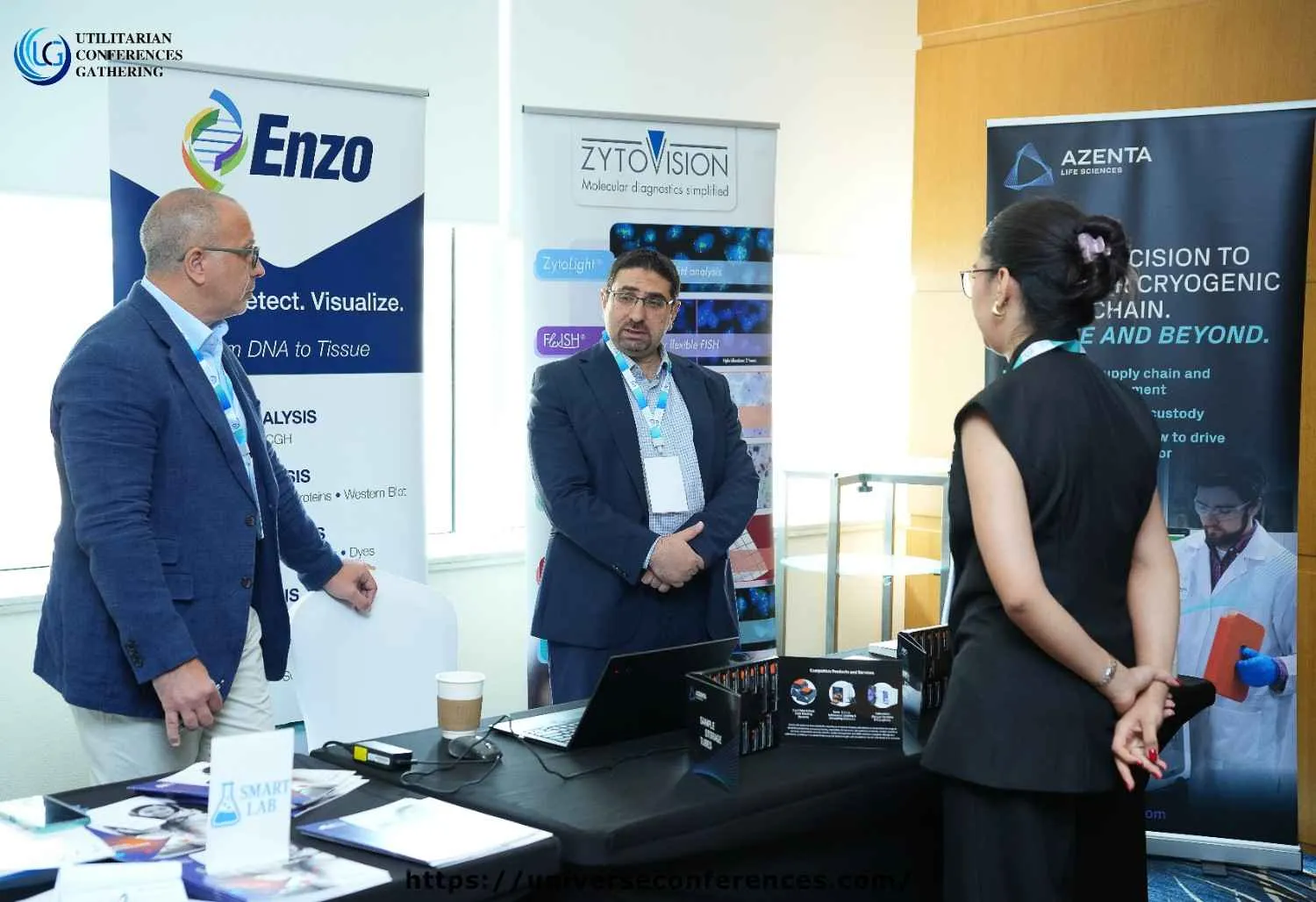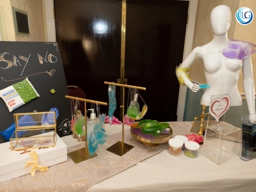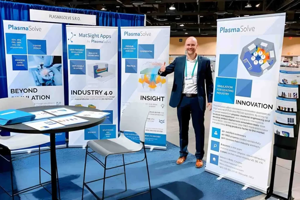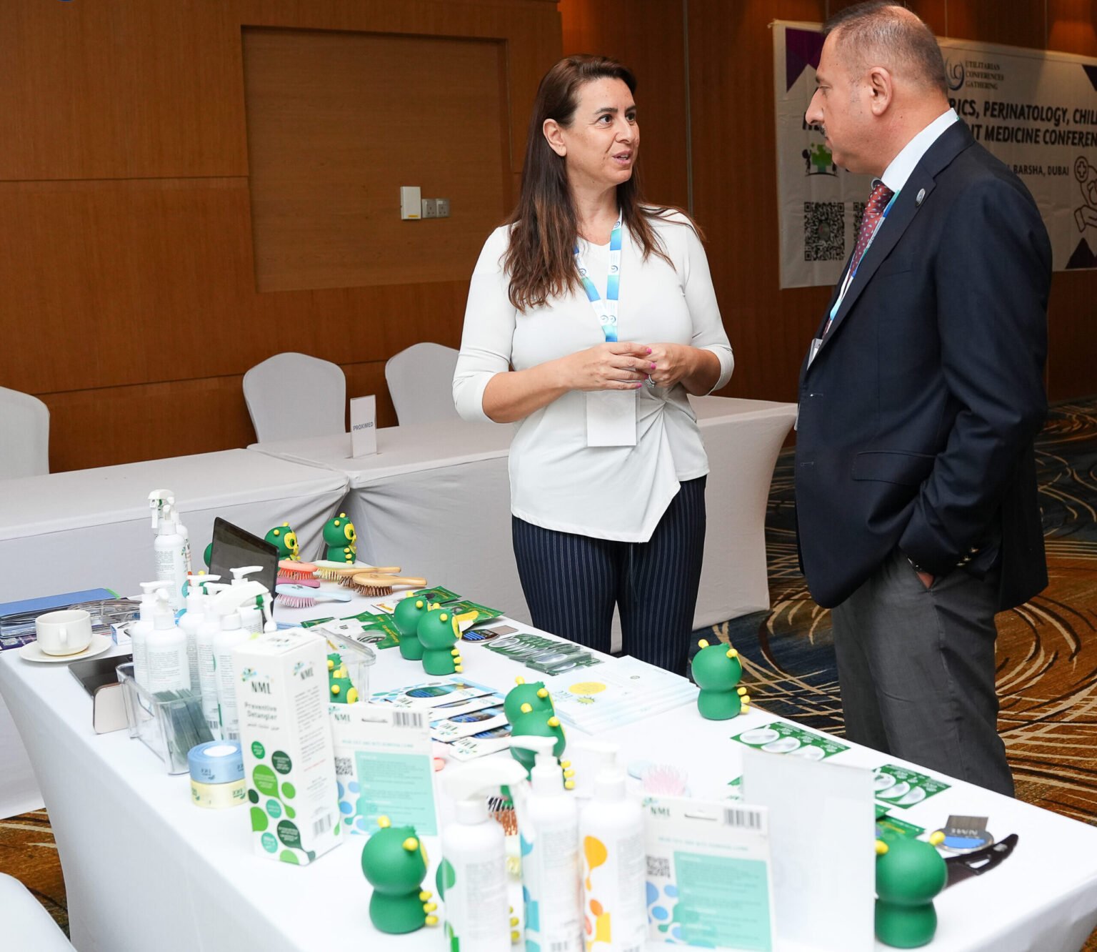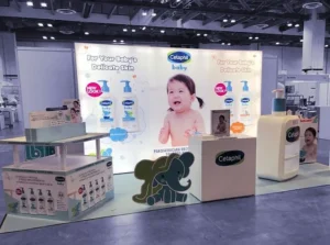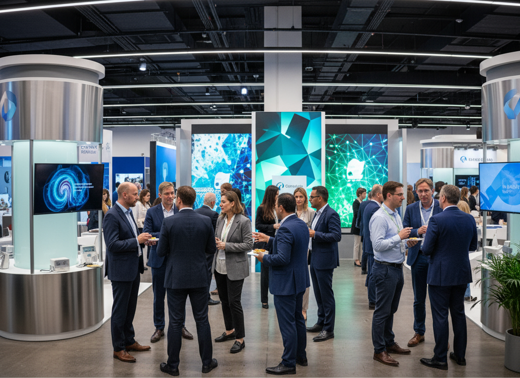 Exhibit Space: Premium booth setup with product showcase tables.